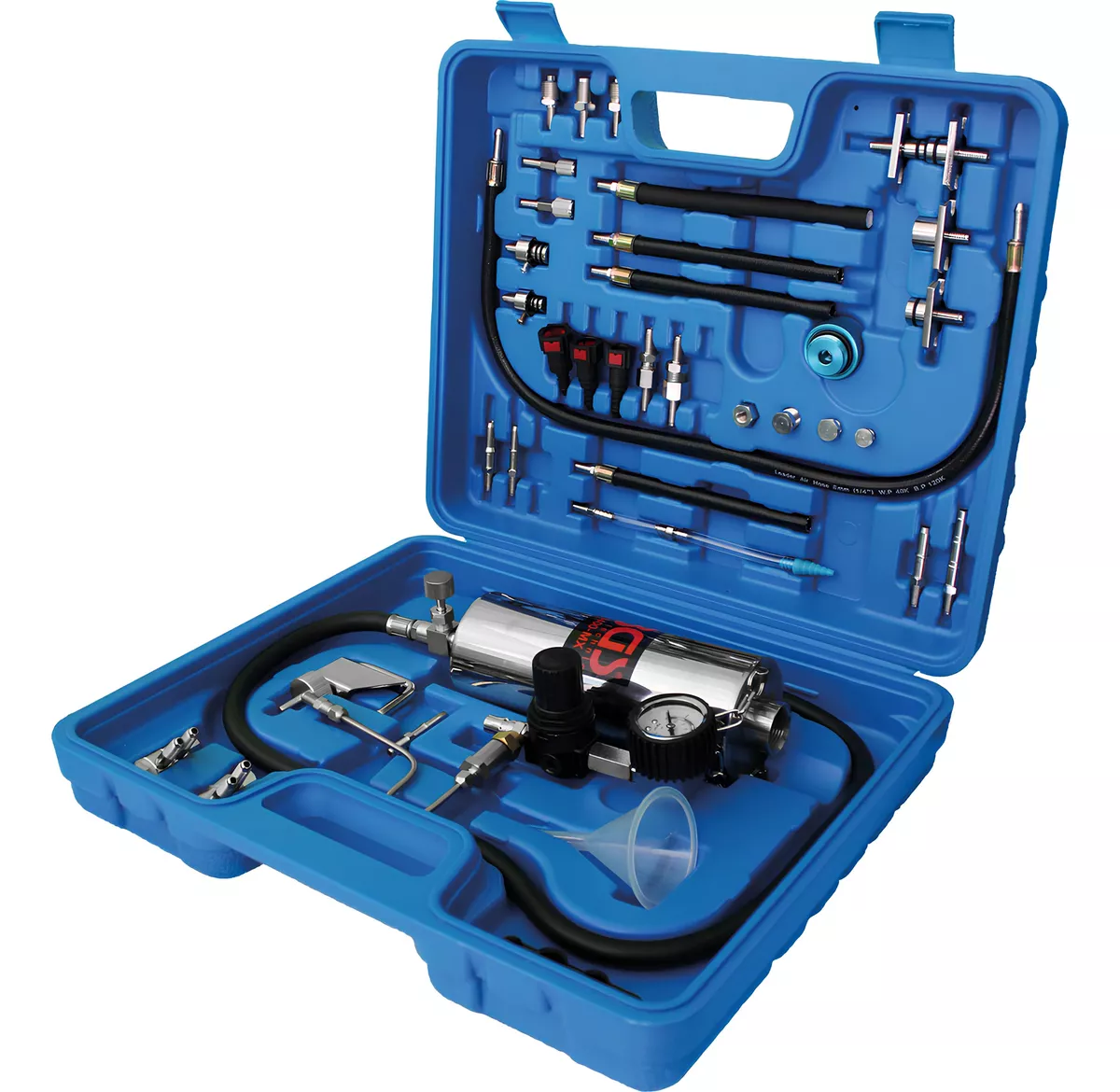 El kit de limpieza incluye diferentes tipos de adaptadores, cubriendo casi en su totalidad el parque vehicular de autos y camionetas ligeras, Americanos, Asiáticos y Europeos.